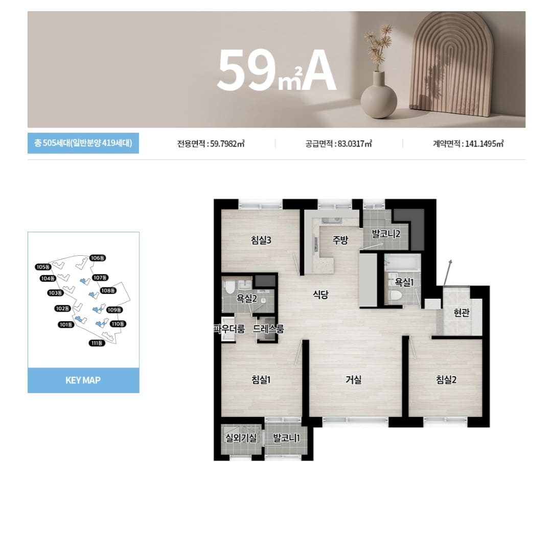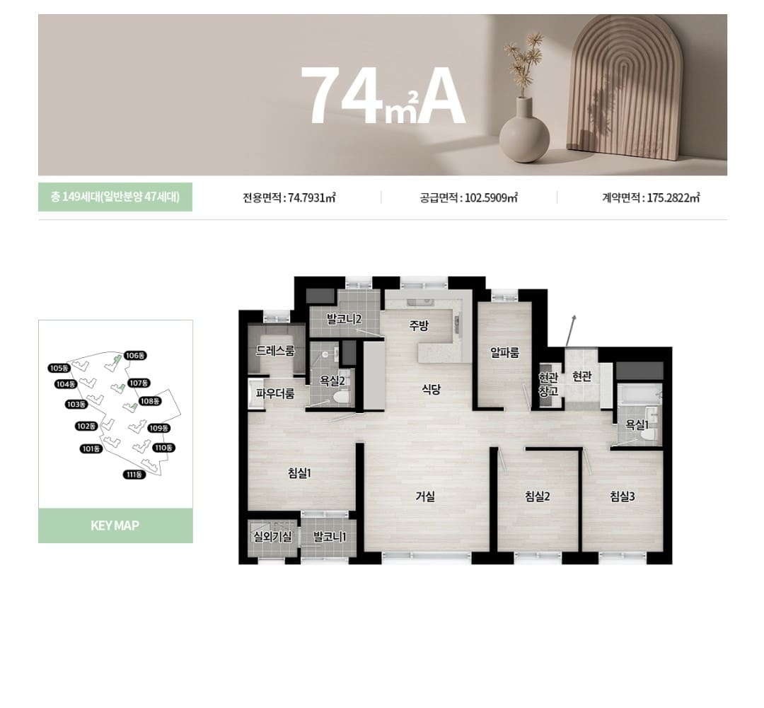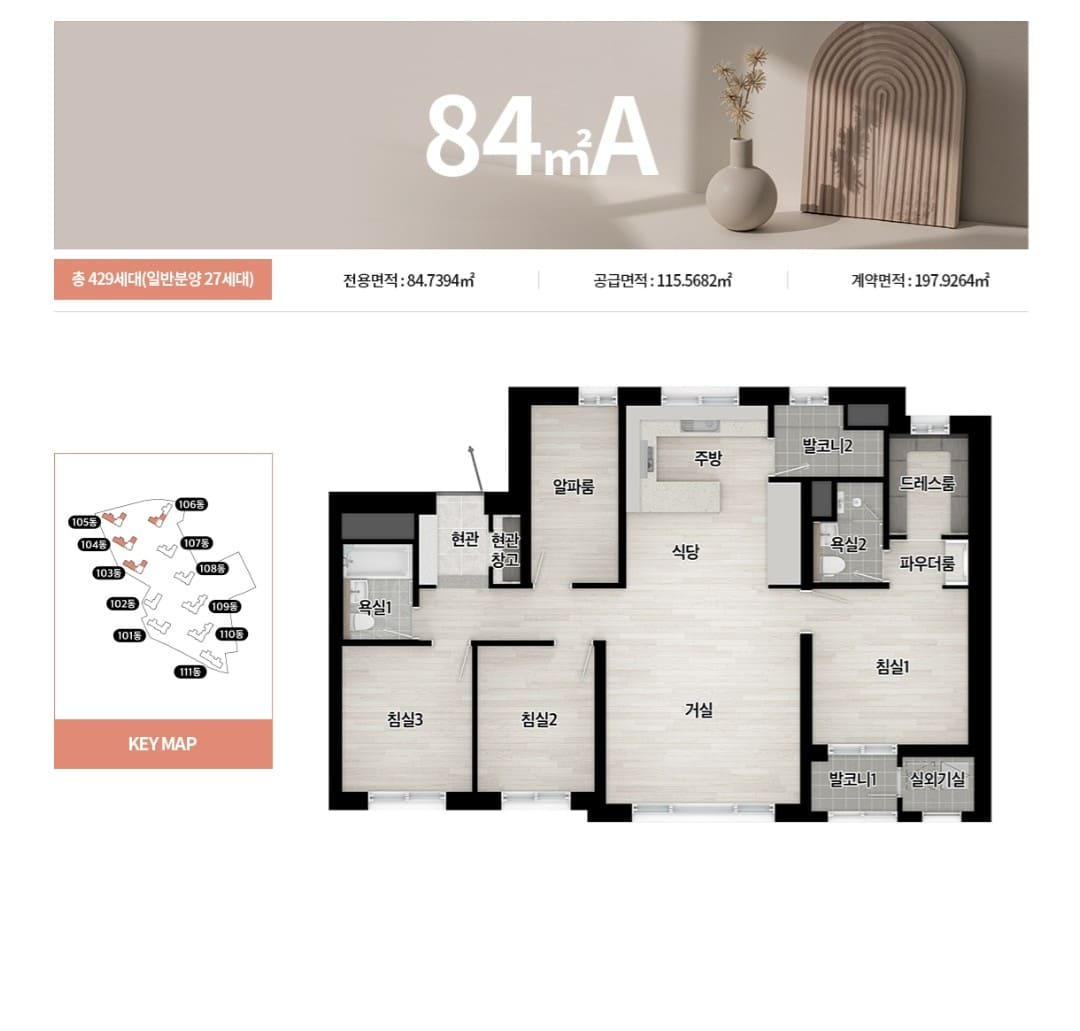 단지 외관은 커튼월룩을 적용하며 단지의 상징성을 높이기 위해 옥탑 및 문주 특화 디자인을 도입할 예정입니다. 모든 세대를 남향으로 설계해 조망과 채광 등을 극대화했습니다. 건폐율을 14.24%까지 낮춰 여유로운 동간 거리를 확보했습니다. 300m 길이의 통경축을 조성해 개방감을 더할 방침입니다.